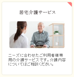 これから介護を受ける高齢者の方、また将来介護しなければならないご家族をお持ちの方々は、介護に対する不安や介護サービスに対する不明瞭な部分を少なからずお持ちではないでしょうか。我々はこのような介護に関するお考えが軽減されるよう、すべての介護サービスにおいてご利用者様やそのご家族様に納得して頂いた上で、一方通行ではないコミュニケーション型介護サービスのご提供を心がけています。